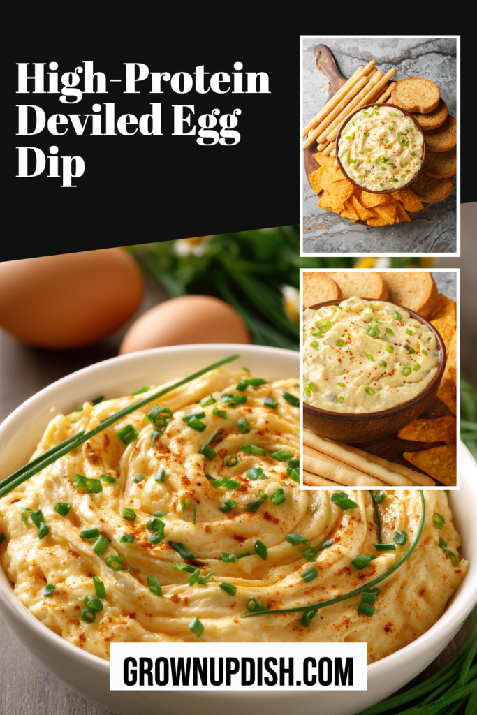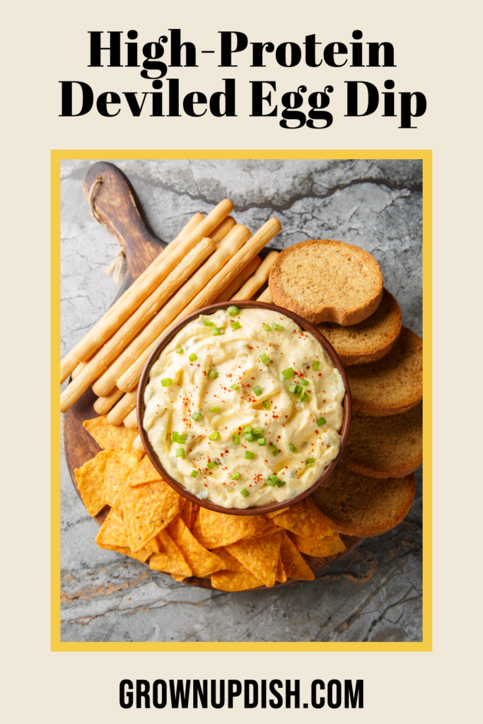 I love deviled eggs (especially the filling) but I hate making them. This creamy high-protein deviled egg dip tastes like the inside of a deviled egg. Dip veggies or crackers in it for a healthy snack. And it has nearly 40 grams of protein.